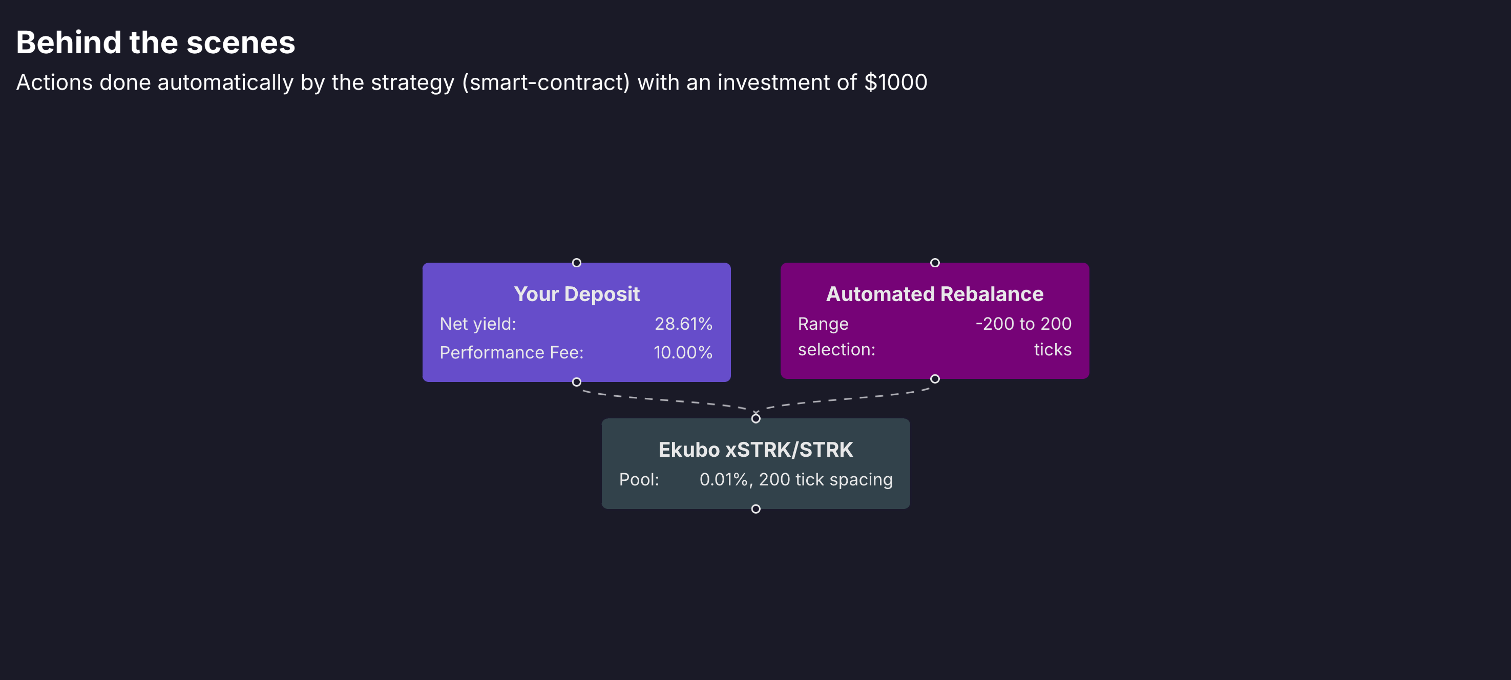 You earn trading fees from the xSTRK/STRK pool on Ekubo. On top of that, rewards like DeFi Spring incentives are auto-compounded back into the vault to boost your returns!